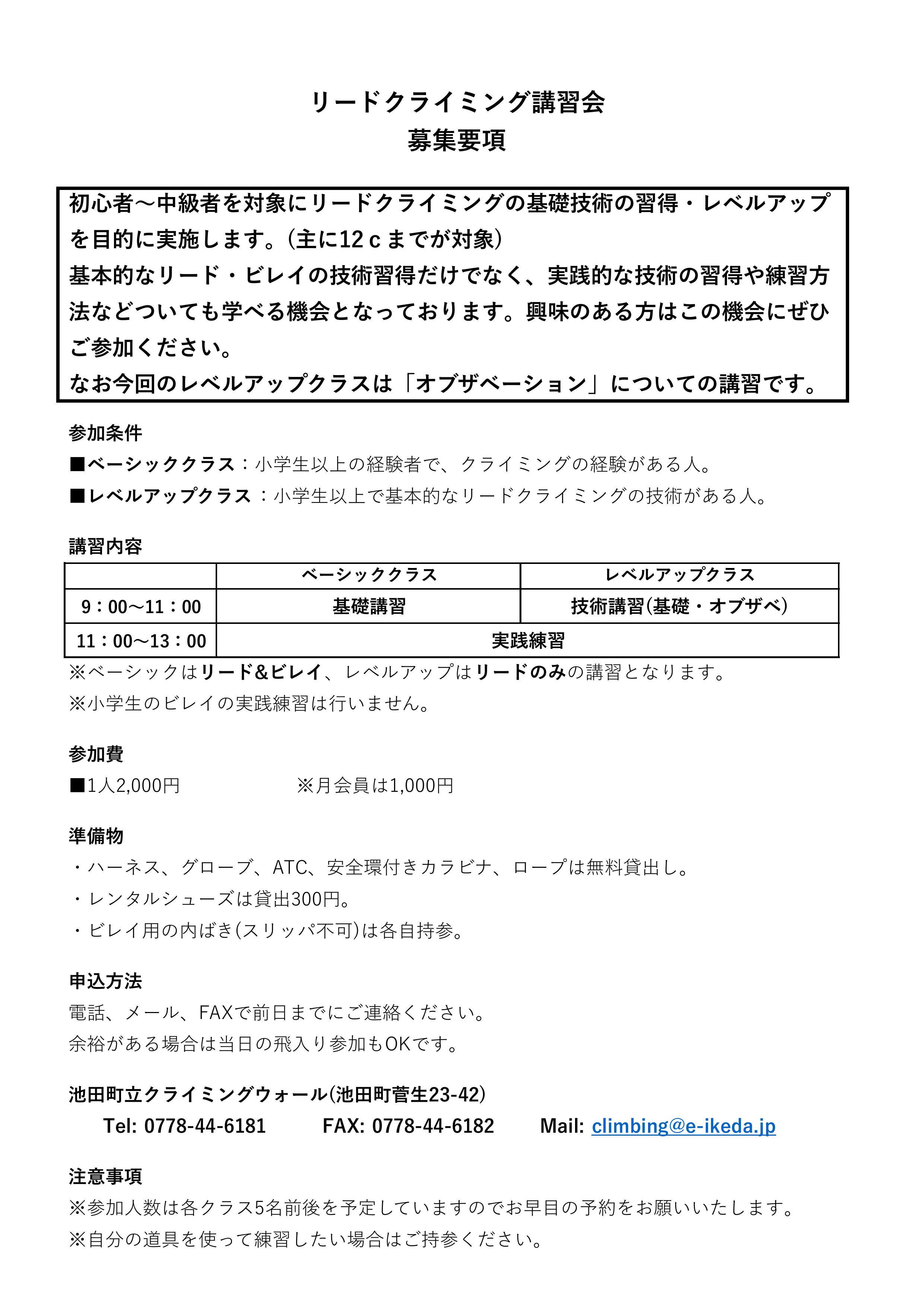 また、4月から再開いたしますので、ドシドシ登りに来てください。