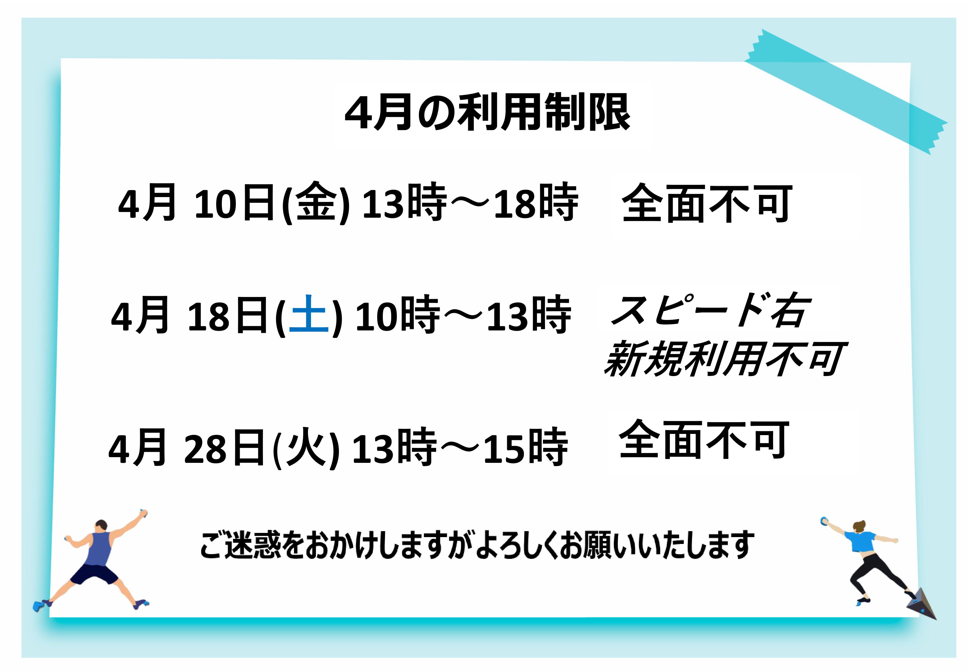 当施設の貸切、イベントなどによる利用制限のご案内です。